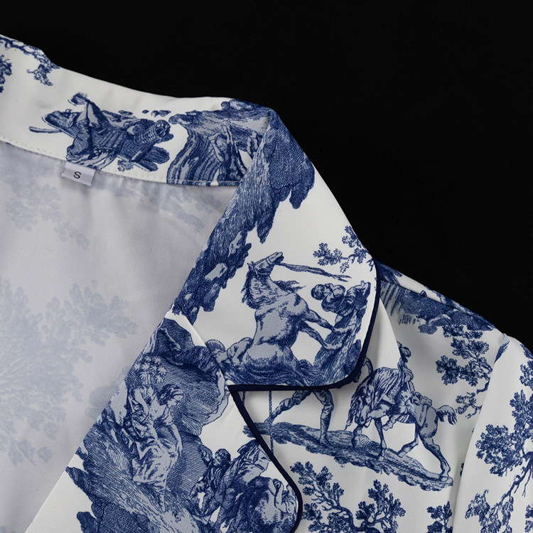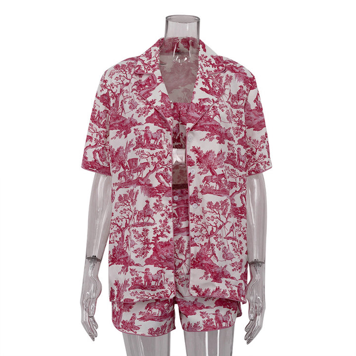 Chinese Ink Printing Shirt Suspender Shorts Three Piece Retro Set Women Clothing