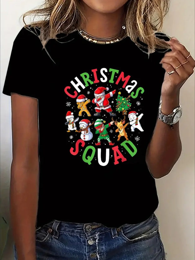 Elegant Y2K-Inspired Christmas Tee For Women - Gingerbread, Snowman & Reindeer Print Casual Crew Neck Short Sleeve Top Machine Washable