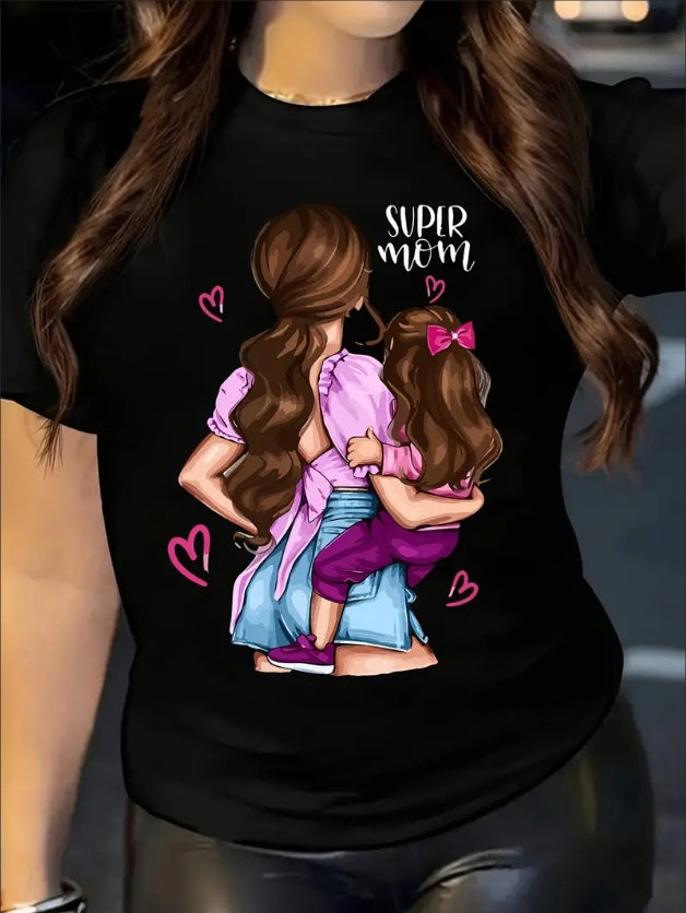 Figure Print Crew Neck T-Shirt, Casual Short Sleeve Top For Spring & Summer, Women's Clothing