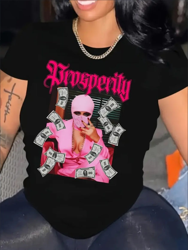 Figure Print Short Sleeve T-shirt, Casual Crew Neck Top For Spring & Summer, Women's Clothing