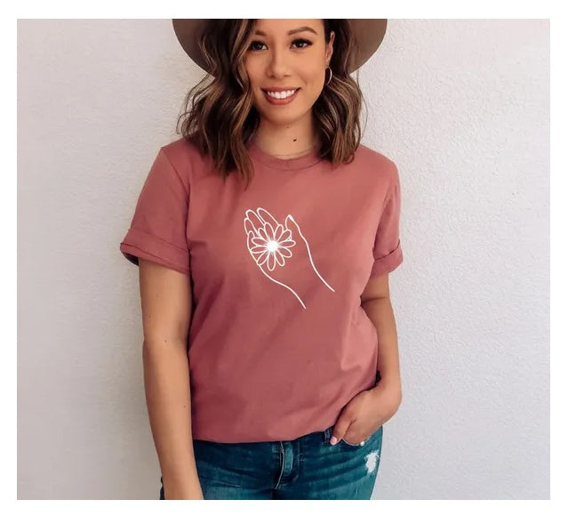 Floral Hand T-shirt, Spiritual Shirt, Psychic Shirt, Floral Top For Girls, Universe Shirt, Camping Gift, Mothers Day Gift, Mom Life Top