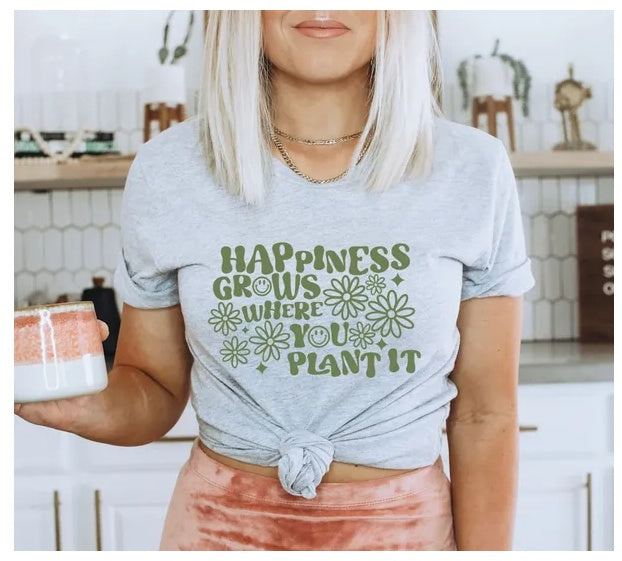 Happiness Grows Where You Plant It T-shirt, Inspirational Shirt, Motivational Gift, Retro Flower Gift, Kindness Top, Positive Shirt