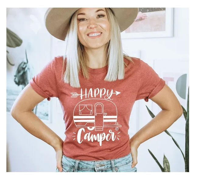 Happy Camper T-shirt, Family Camper Shirt, Birthday Party Gift, Camping Shirt, Travel Tshirt, Adventure Top, Camp Life Gift, Gift For Mom
