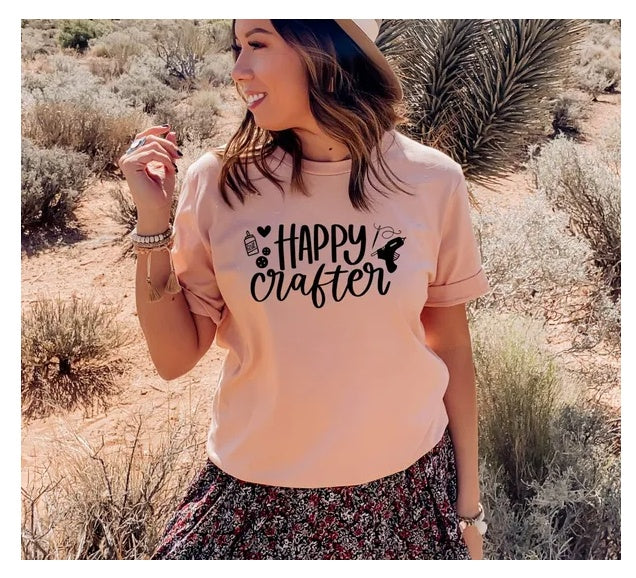 Happy Crafter T-shirt, Outdoors Shirt, Motivational Gift, Crafting Lover Top, Crafter Shirt, Adventure Tee, Gift For Her, Mama Shirt