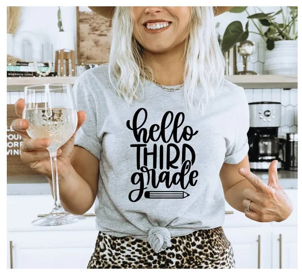 Hello Third Grade T-shirt, School Shirt, Teacher Team Tee, First Day Of School Shirt, Third Grade Teacher Gift, Mama Tee, Third Grade Gift,