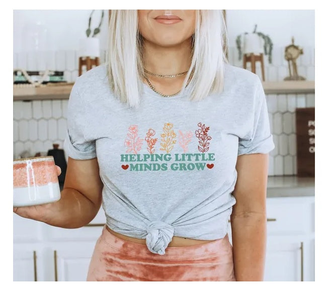 Helping Little Minds Grow T-shirt, Teacher Life SHirt, Appreciation Gift, Inspirational Tee, Wildflowers Top, Bookworm Shirt, Teacher Tee