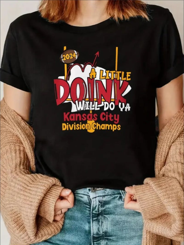 KC, Football Graphic Print T-Shirt - Crew Neck, A Comfortable Women's Short-sleeved Crew Neck T-shirt For Everyday Wear And Stylish Layering