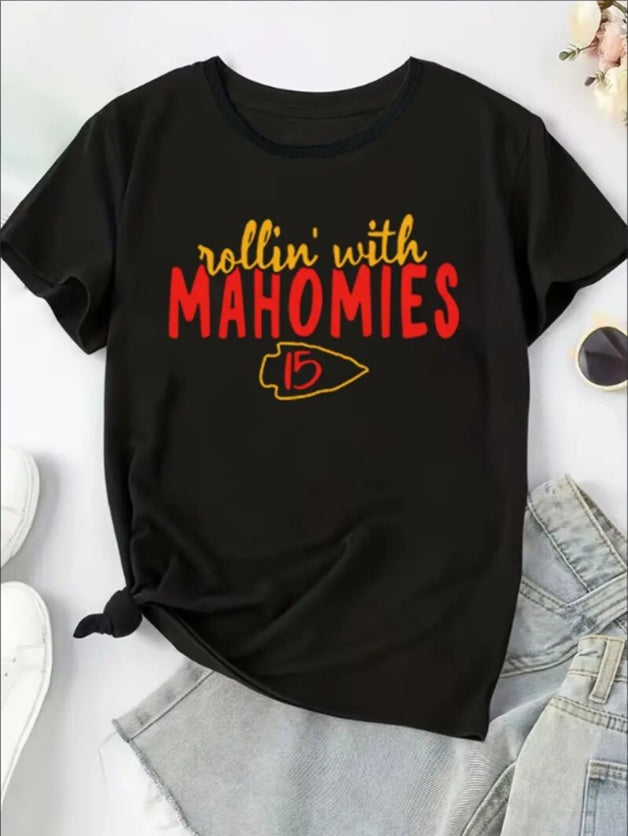 KC, Football Graphic Print T-Shirt - Crew Neck, A Comfortable Women's Short-sleeved Crew Neck T-shirt For Everyday Wear And Stylish Layering