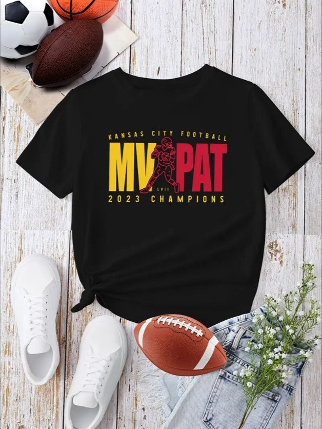 KC, Football Graphic Print T-Shirt - Crew Neck, A Comfortable Women's Short-sleeved Crew Neck T-shirt For Everyday Wear And Stylish Layering