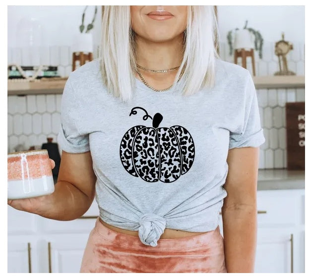 Leopard Pumpkin T-shirt, Cute Cheetah Pumpkin Gift, Thanksgiving Shirt, Halloween Tee, Cute Fall Top, Fall Vibes Shirts, Thankful Gift