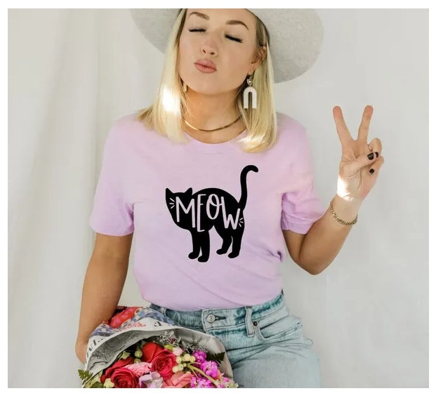 Meow T-shirt, Thanksgiving Shirt, Cat Gift, Holiday Tee, Cat Lover Gift, Pet Lover Shirt, Fall Vibes Top, Gift For Her, Women's Shirt