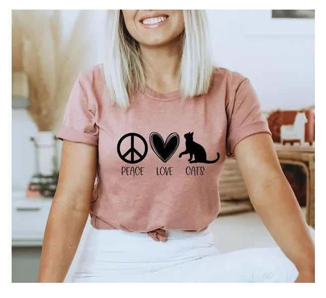 Peace Love Cats Shirt, Cat Shirt, Cat Mom Shirts, Gift Idea, Gift Idea Cat, Cat Fashion Top, Cat Love Tee, Gift Idea Woman