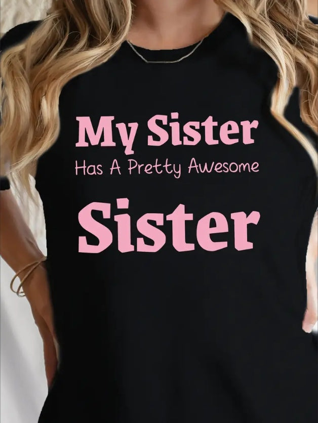 Personalized Sister Letter Print Crew Neck T-Shirt - Women's Casual Short Sleeve Spring & Summer Tee - Comfortable Relaxed Fit, Soft Fabric, And Vibrant Colors For A Stylish Look