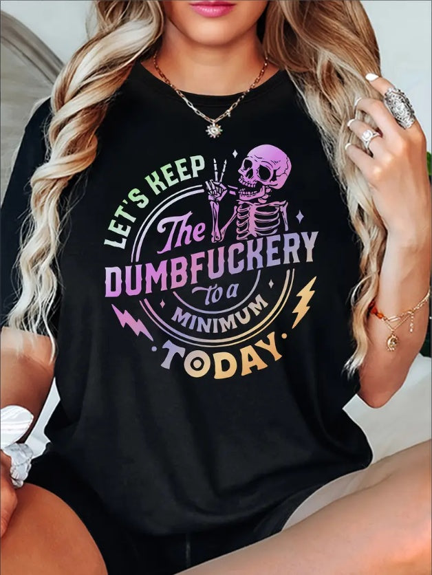 Relaxed Fit Short Sleeve Women's T-Shirt, Colorful Skeleton Print Round Neck Casual Sports Tee For Spring & Summer Everyday Top