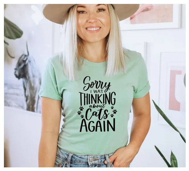 Sorry I Was Thinking About Cats Shirt, Thinking About Cats Tee, Whimsical Cat Design, Feline Enthusiast Top, Funny Cat Lovers Apparel