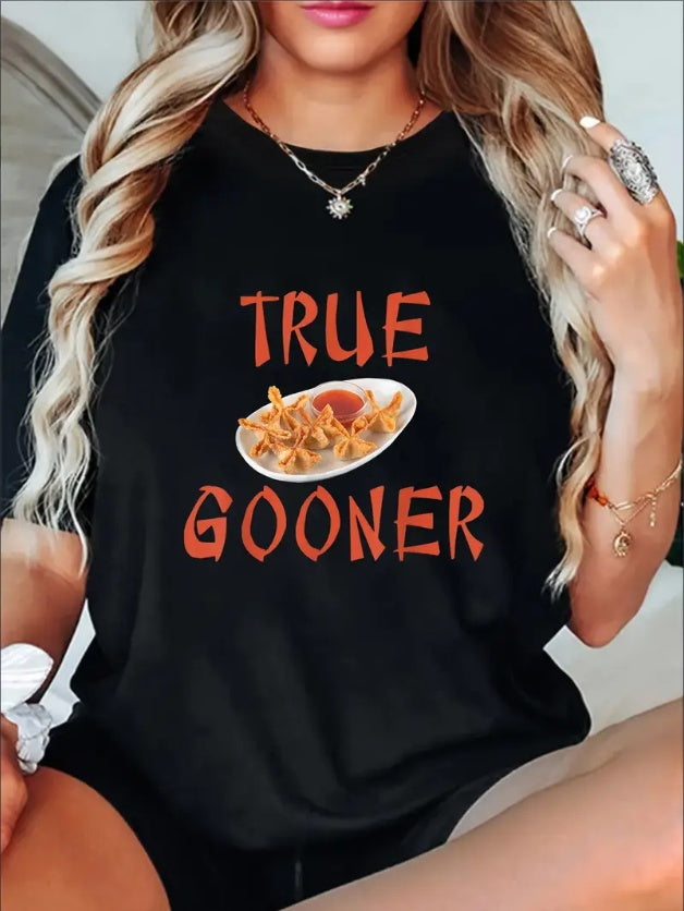 True Gooner Print Tee, Casual Short Sleeve Crew Neck T-shirt, Women'S Clothing