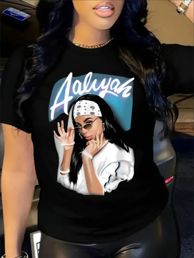 Vibrant Portrait Print Short Sleeve T-Shirt For Women - Soft Polyester Fabric, Round Neckline, Machine Washable, Easy Care, Comfortable Wear - Perfect For Casual Daily Life