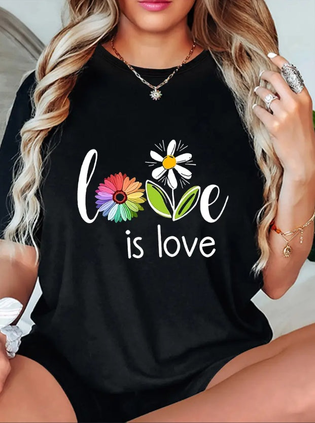 Women's Love Floral Graphic Tee - Casual Round Neck Short Sleeve T-Shirt, Stretchy Polyester Blend, Machine Washable - Perfect For Fitness & Casual Attire