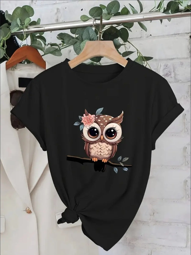Women's Sports Short Sleeve T-Shirt, Comfortable And Stylish, For Sports And Daily Life, Cartoon Owl Print